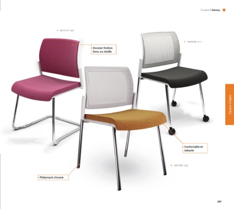 Fauteuil Swany SW7CTB1 A23 SW4CRB1 A11 + Dossier finition tissu ou résille Espace Sièges + Confortable et robuste SW1CRB1 A22 + Piètement chromé 257