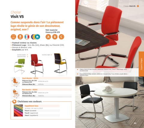 Chaise Visit VS Haut dossier, piètement Chromé (CH), Tissu A Alfa Rouge (A03) //