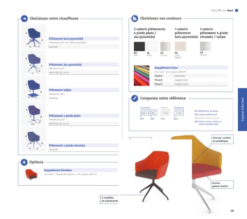 3 coloris piètements 1 coloris 1 coloris