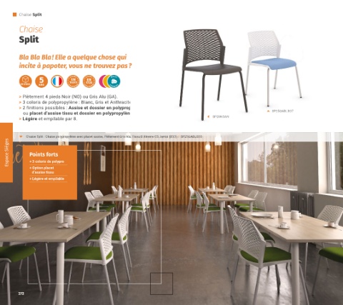 ou placet d’assise tissu et dossier en polypropylène. SP25GABL B37