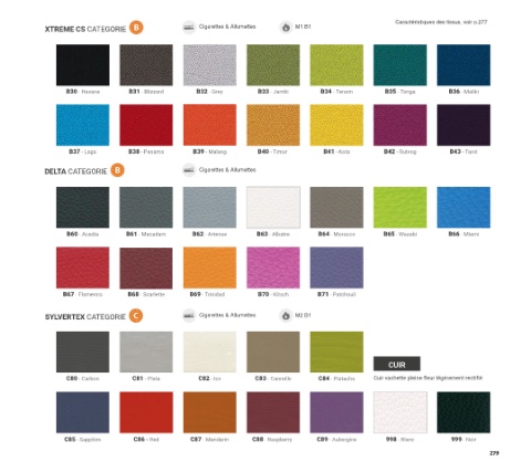 C85 - Sapphire C86 - Red C87 - Mandarin C88 - Raspberry C89 - Aubergine 998 - Blanc 999 - Noir