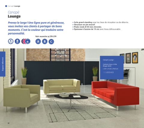 Prenez le large ! Une ligne pure et généreuse, > Sofa grand standing pour les lieux de réception ou de détente.