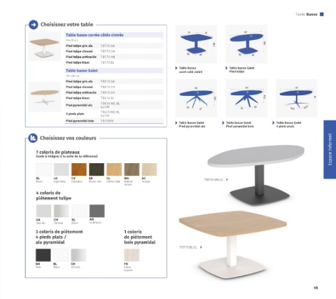 3 coloris de piètement 1 coloris