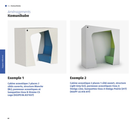 (BL), panneaux acoustiques et Oméga Lime, banquettes tissu A Oméga Prairie (A17)