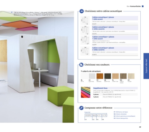Préciser coloris structure + panneaux acoustiques + banquettes