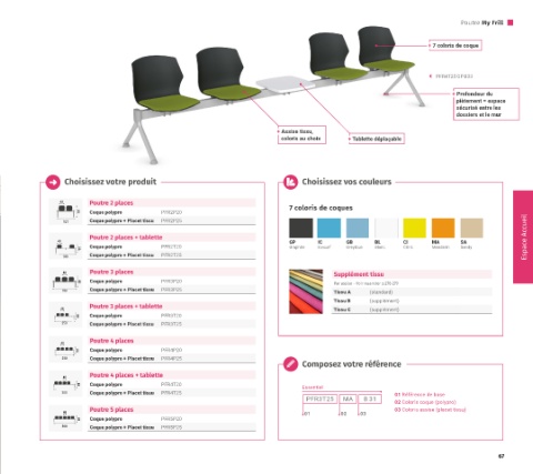 Poutre 5 places 03 Coloris assise (placet tissu)
