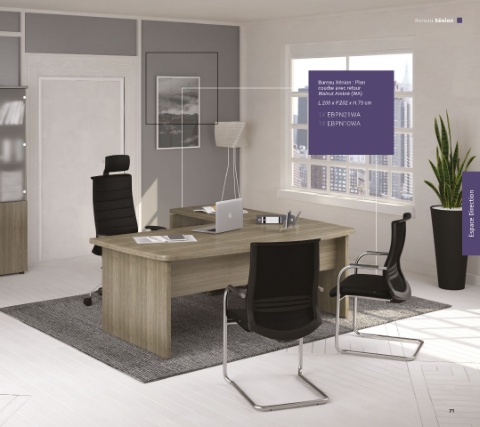 Bur Bureau Xénioneau Xénion Bureau Xénion : Plan courbe avec retour Walnut Ambré (WA) L.200 x P.202 x H.73 cm 1X EBPN21WA 1X EBPN10WA Espace Direction 71
