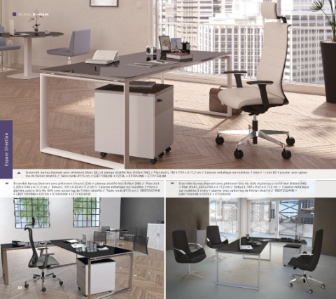 Ensemble bureau Diamant avec piètement Chromé (CH) et plateau stratifié Noir Brillant (NB) // Plan droit Ensemble bureau Diamant avec piètement Gris Alu (GA) et plateau stratifié Noir Brillant (NB)