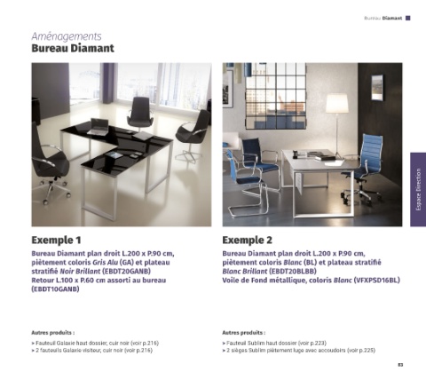 > Fauteuil Galaxie haut dossier, cuir noir (voir p.216) > Fauteuil Sublim haut dossier (voir p.223)