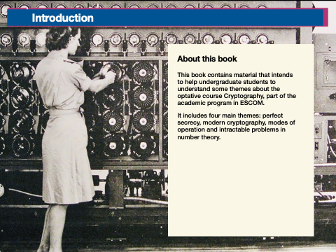 This book contains material that intends to help undergraduate students to understand some themes about the optative course Cryptography, part of the academic program in ESCOM.