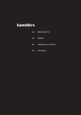 families 12 BRACELETS 30 RINGS 44 Necklaces & Chains 52 Pendants 11