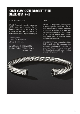 David Yurman’s artistic signature, METAL: Use the provided polishing cloth