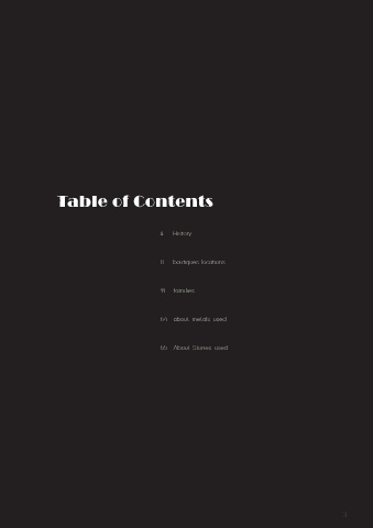 Table of Contents 4 History 8 boutiques locations 11 families 64 about metals used 65 About Stones used 3