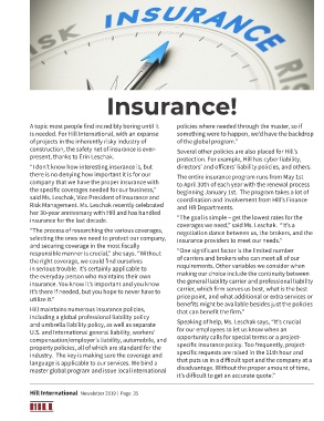 construction, the safety net of insurance is ever-      Several other policies are also placed for Hill’s