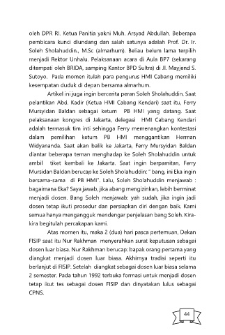 bersama-sama di PB HMI”. Lalu, Soleh Sholahuddin menjawab :