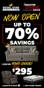 UP TO 70% SAVINGS 1. Tufted SOFA YOUR CHOICE! $ 295 Only 2. Chocolate or tan recliner 3. QUEEN MATTRESS & BOXSPRING NOW OPEN