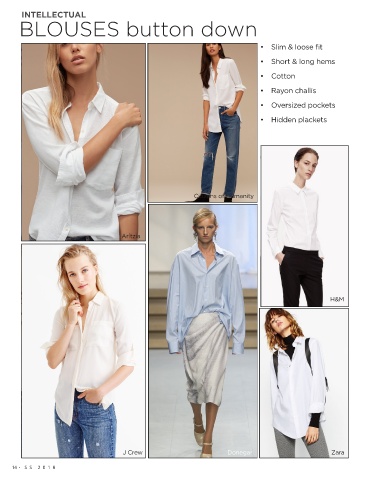 INTELLECTUAL BLOUSES button down • Slim & loose fit • Short & long hems • Cotton • Rayon challis • Oversized pockets • Hidden plackets Citizens of Humanity Aritzia H&M J Crew Donegar Zara . 14 S S 2018