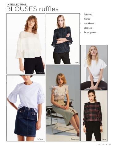 INTELLECTUAL BLOUSES ruffles • Tailored • Tiered • Necklines • Sleeves • Front yokes H&M Club Monaco Ted Baker H&M Zara J Crew Doneger Zara S S 2018 . 15