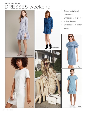 INTELLECTUAL DRESSES weekend • Casual and playful silhouettes • Shift dresses in jersey • T shirt dresses • Shirt dresses in cotton stripes Club Monaco Anthropologie J Crew Aritzia H&M . 20 S S 2018