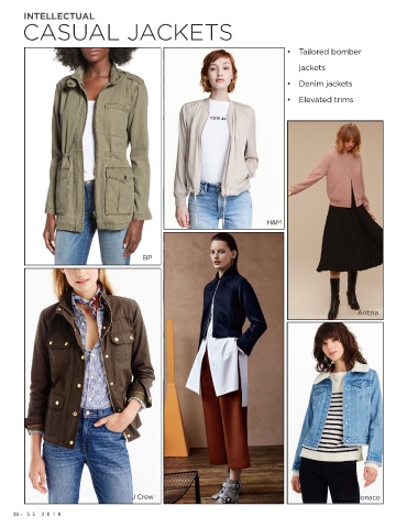 INTELLECTUAL CASUAL JACKETS • Tailored bomber jackets • Denim jackets • Elevated trims H&M BP Aritzia J Crew Doneger Club Monaco . 28 S S 2018