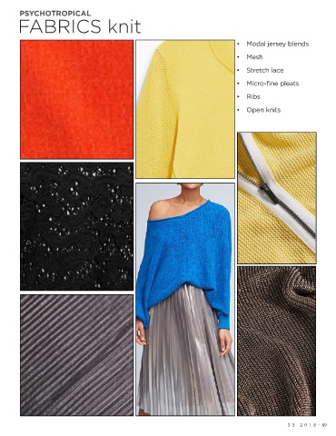 PSYCHOTROPICAL FABRICS knit • Modal jersey blends • Mesh • Stretch lace • Micro-fine pleats • Ribs • Open knits S S 2018 . 69