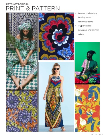 PSYCHOTROPICAL PRINT & PATTERN • Intense contrasting lush lights and luminous darks • Hyper-exotic botanical and animal prints S S 2018 . 71