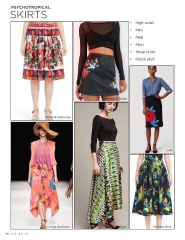 PSYCHOTROPICAL SKIRTS • High waist • Mini • Midi • Maxi • Wrap skirts • Pencil skirt Silence & Noise Dolce & Gabbana Loft Yumas Koshimo Anthropologie Michael Kors . 80 S S 2018