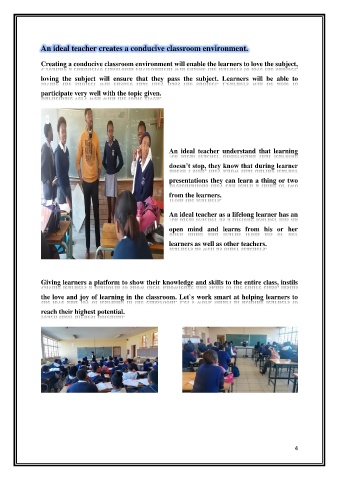 An ideal teacher creates a conducive classroom environment.