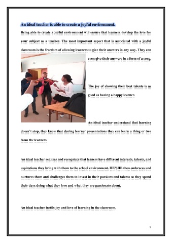 An ideal teacher realizes and recognizes that leaners have different interests, talents, and