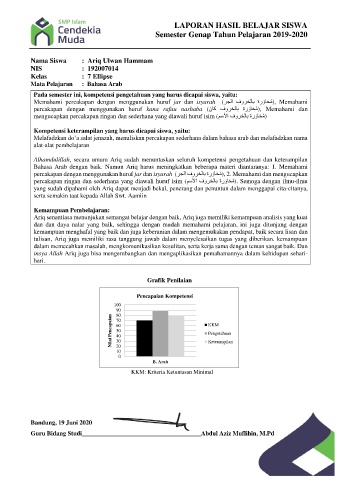 Bahasa Arab dengan baik. Namun Ariq harus meningkatkan beberapa materi diantaranya: 1. Memahami