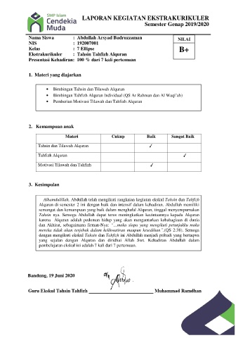 Alhamdulillah, Abdullah telah mengikuti rangkaian kegiatan ekskul Tahsin dan Tahfizh