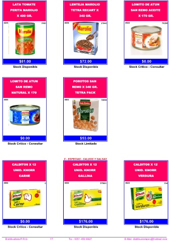 Distribuidora P.R.O. 17 Tel.: 0351-458-8927 E-Mail: distribuidorapro@hotmail.com