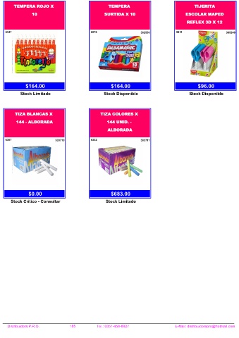 Distribuidora P.R.O. 185 Tel.: 0351-458-8927 E-Mail: distribuidorapro@hotmail.com