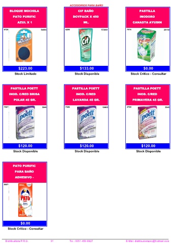 Distribuidora P.R.O. 91 Tel.: 0351-458-8927 E-Mail: distribuidorapro@hotmail.com