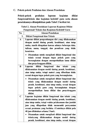 Tabel 2. Alasan Penolakan Laporan Kegiatan Diklat