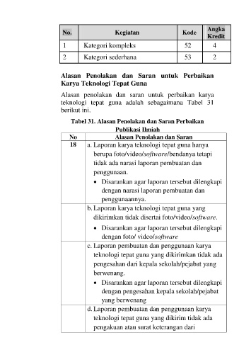Tabel 31. Alasan Penolakan dan Saran Perbaikan