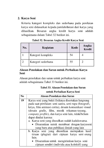 Tabel 32. Besaran Angka Kredit Karya Seni