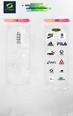 Women Footwear 产品 品牌 鞋⼦ -跑步鞋 -⾜球鞋 -篮球鞋 -时尚鞋 -拖鞋 -另外的