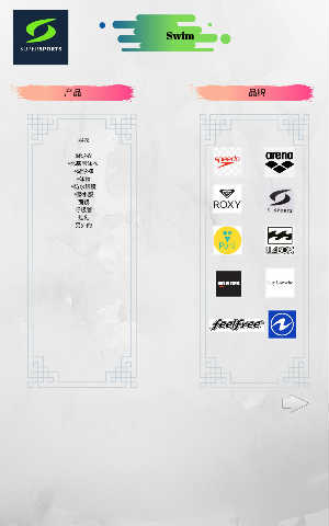 Swim 产品 品牌 服⾐ 游泳⾐ -⽐基尼泳⾐ -游泳裤 -泳帽 -防⽔眼镜 -潜⽔服 ⾯镜 呼吸管 蛙鞋 另外的