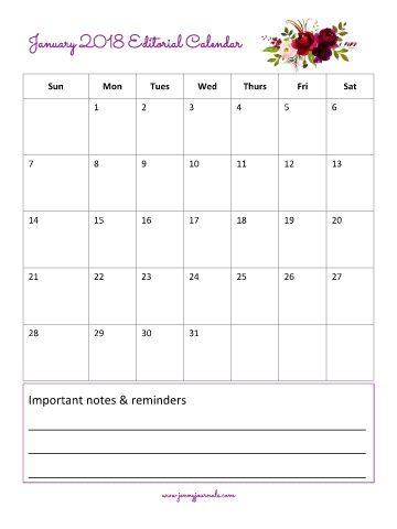 January 2018 Editorial Calendar