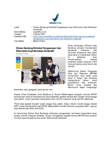 Judul : Dinkes Bandung Perketat Pengawasan Usai Ditemukan Kopi Berbahan