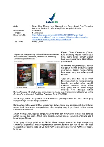 Judul : Geger Kopi Mengandung Sildenafil dan Paracetamol Bisa Timbulkan