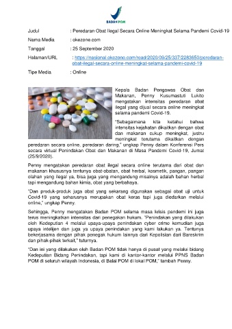 Judul : Peredaran Obat Ilegal Secara Online Meningkat Selama Pandemi Covid-19