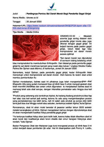 Judul : Pentingnya Pemicu Sel Darah Merah Bagi Penderita Gagal Ginjal