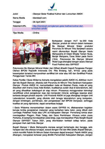 Judul : Gianyar Gelar Festival Kuliner dan Luncurkan AMDK