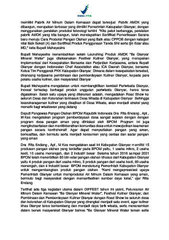 Pemerintah Gianyar untuk memproduksi Air Minum Dalam Kemasan yang aman,