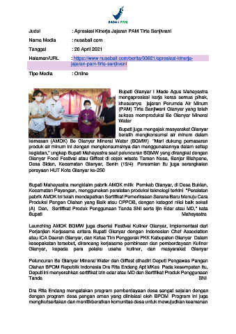 Judul : Apresiasi Kinerja Jajaran PAM Tirta Sanjiwani