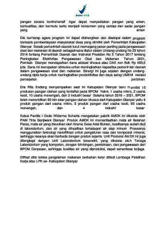 telah menerbitkan 80 izin edar pangan olahan khusus dari Kabupaten Gianyar yaitu 4