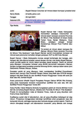 Judul : Bupati Gianyar luncurkan air mineral dalam kemasan produksi lokal