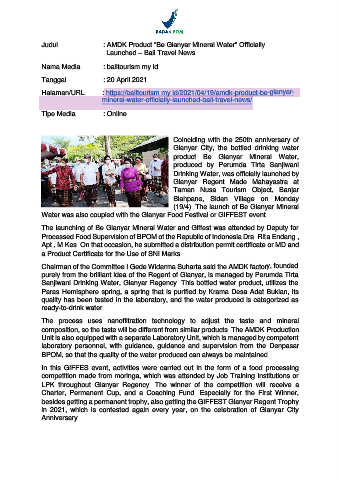 Judul : AMDK Product “Be Gianyar Mineral Water” Officially
